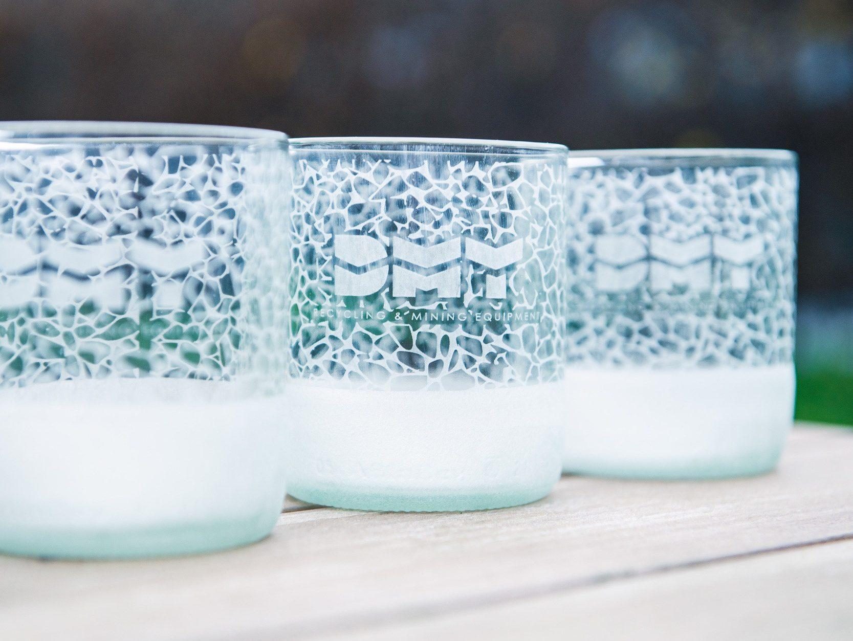 IWAS, een onderneming die op een verantwoorde manier oude flessen upcyclet tot hippe, eigentijdse glazen. Wij mogen regelmatig het logo van hun klanten lasergraveren op deze glazen, wat resulteert in een duurzaam en tegelijkertijd stijlvol promomateriaal.