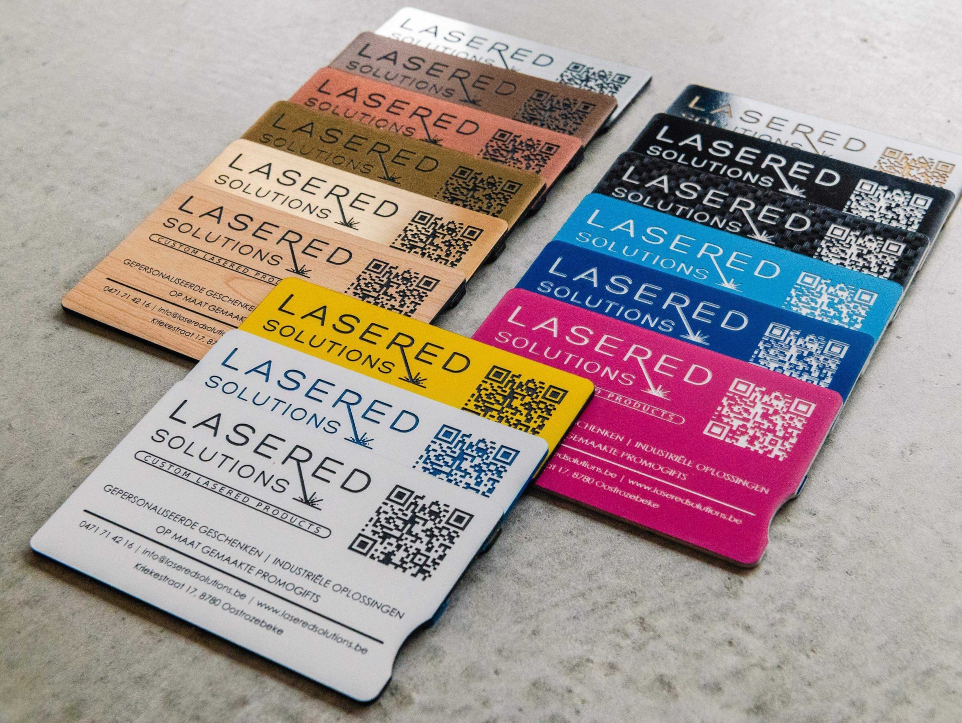 Visitekaartjes in duurzaam kunststoflaminaat: stijlvol, stevig en volledig personaliseerbaar. Ontdek hoe lasergravure jouw kaartje een blijvende, professionele uitstraling geeft.