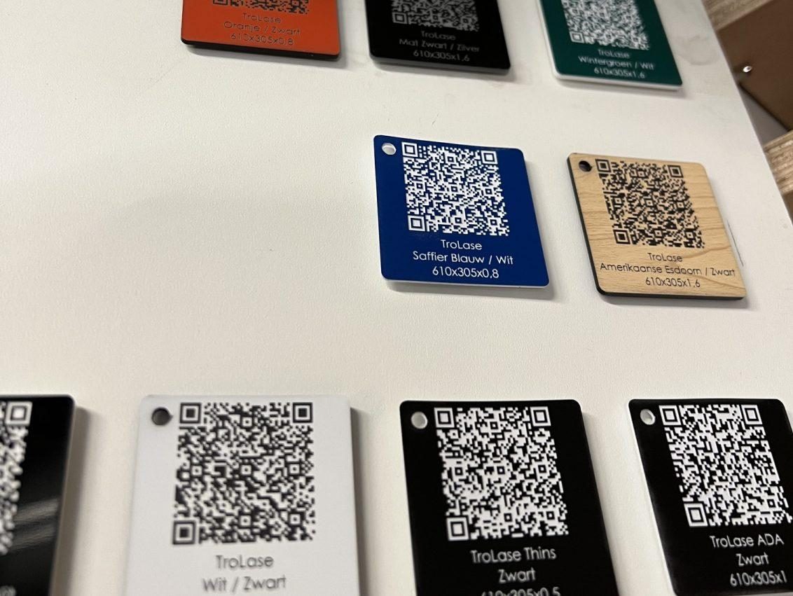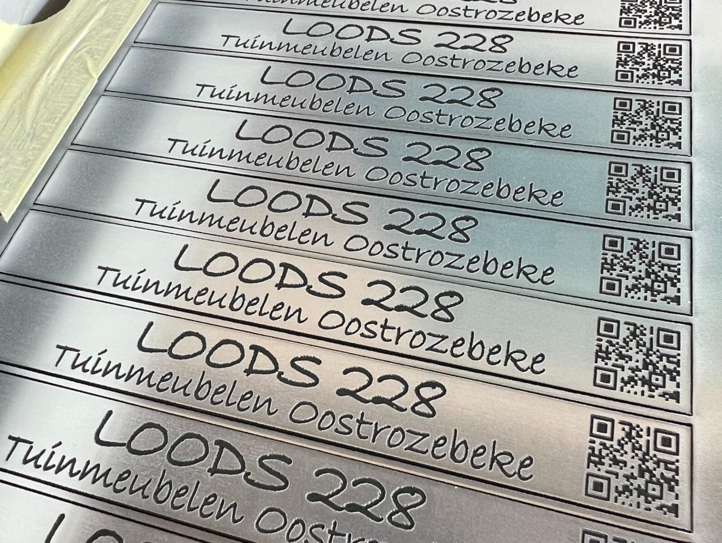 Voor Loods 228 maken we merkplaatjes met QR-code: strak, duurzaam en perfect om producten, ruimtes of materiaal snel en professioneel traceerbaar te maken.
