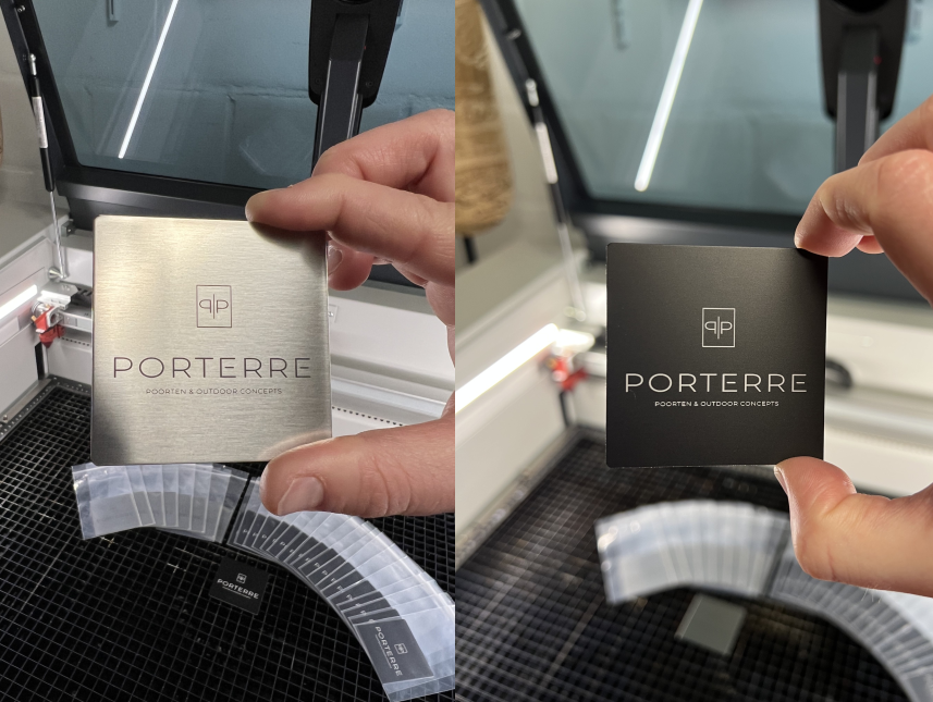Merkplaatjes voor poorten in inox of zwart geanodiseerd aluminium: strak, duurzaam en een professionele signatuur op elk project.